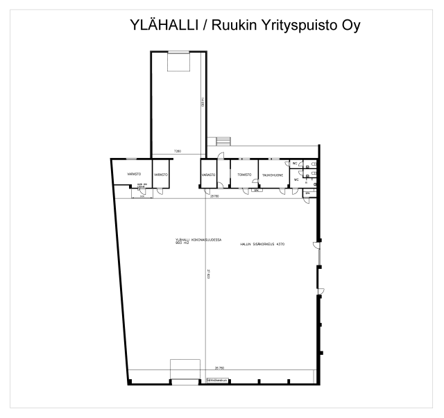 Ylähallin tilat räätälöimme asiakkaan tarpeita kuunnellen. Alue käsittää myös toimistotilat, jotka ovat hallin tavoin jo parhaat päivänsä nähneet. Hallin vapaakorkeus on 4,4 m.